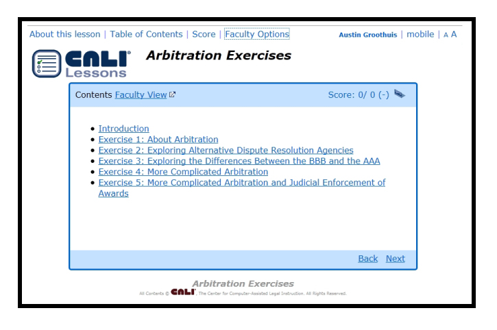 That's right, there's always a secret room. This one's for that special someone you, dear CALI Lessons, are always trying to woo: law school faculty. It's full of new faculty features that weren't available before. We'll let faculty take a look when they login to cali.org and run a lesson themselves. Wait until they click that faculty options link or use the faculty view: really start exploring. They'll find out what we're talking about.